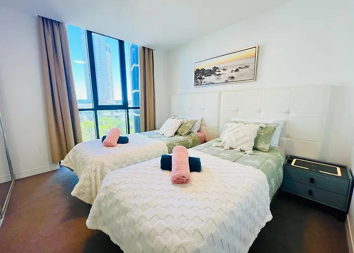 寝室2室のアパートは、文化への理解を深めるのに最適な場所であるジ・アーツ・センター・ゴールドコーストから自動車で10分の場所にあります。 シェブロンルネッサンスショッピングセンターはThe Coastline Denアパートメントから1.1kmです。